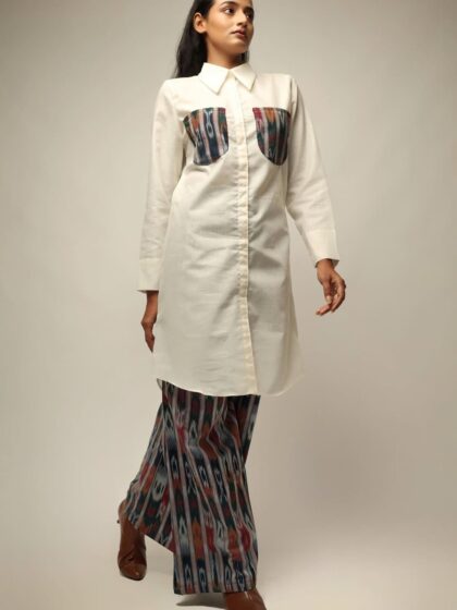 This piece can be perfectly paired with a skirt of a trouser from the same collection, creating a cohesive and stylish look